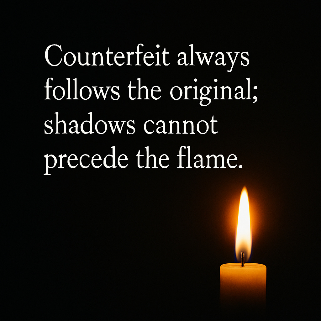 “Counterfeit always follows the original; shadows cannot precede the flame.”